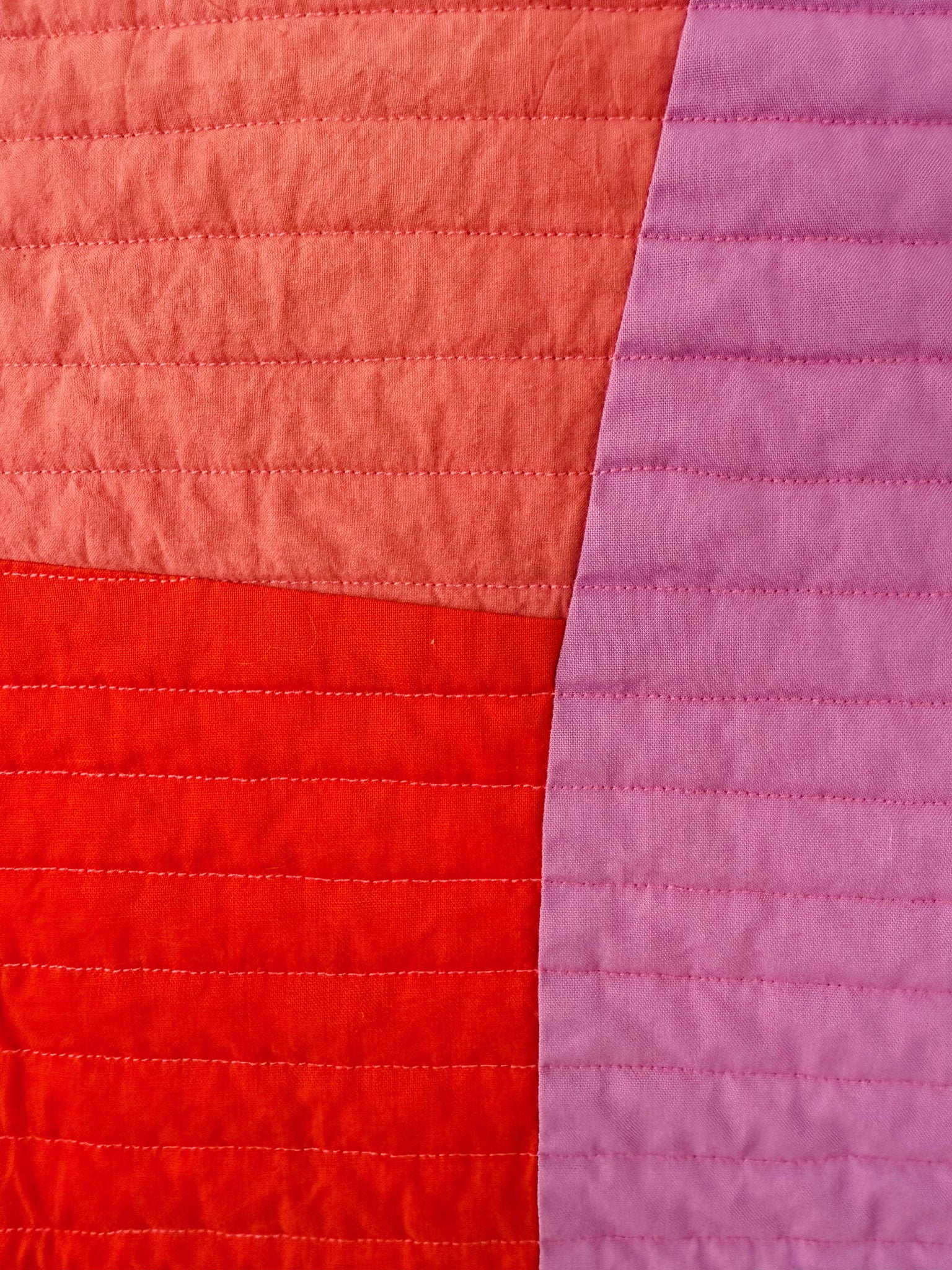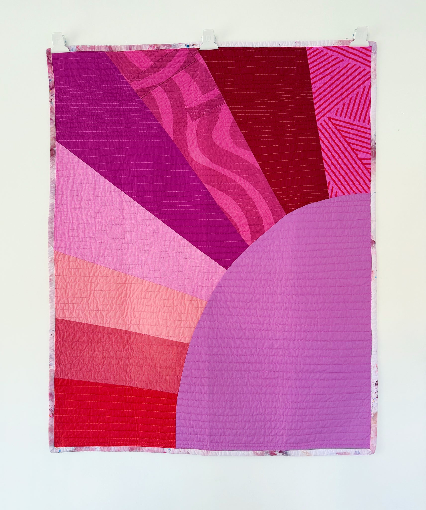 This quilt makes me feel warm and cozy. A medley of warm pinks, purples and reds, this beautiful work of art is a necessary reminder of the sun in winter.
